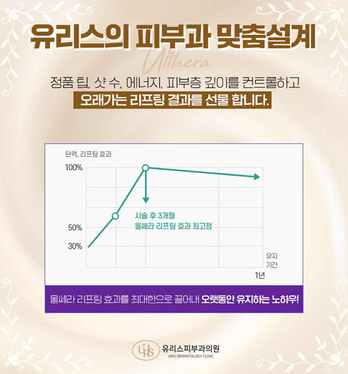 울쎄라는 한 번 시술로도 1년 이상 유지되는 강력한 리프팅 효과를 보이는 것으로 유명합니다. 그러나 시술 효과와 지속 기간은 정품 팁 사용 여부, 정확한 샷 수, 개인별 맞춤 에너지 조절에 따라 달라집니다. 용인 피부과에서는 환자의 연령, 피부 두께, 노화 단계 등을 고려하여 최적화된 세팅으로 시술합니다. 여름철에는 자외선 손상으로 피부 장벽이 약해져 있기 때문에, 무조건 강한 에너지보다는 피부 회복력을 고려한 맞춤형 시술이 중요합니다. 또한 울쎄라 시술 후에는 콜라겐 재생이 2~3개월간 꾸준히 이어져, 시간이 지날수록 피부 탄력과 리프팅 효과가 점점 뚜렷해집니다. 여기에 자외선 차단제와 수분 공급을 철저히 병행하면 효과를 더욱 오래 유지할 수 있습니다.