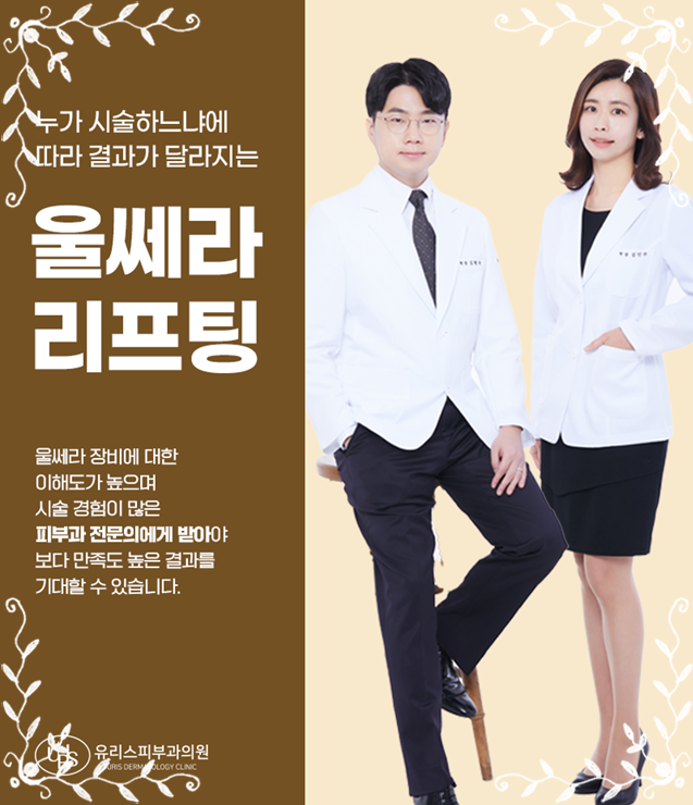 울쎄라를 처음 접하는 분들이 가장 많이 걱정하는 부분은 볼패임, 얼굴 비대칭, 멍이나 붓기와 같은 부작용입니다. 그러나 이러한 문제는 대부분 정품 팁을 사용하지 않거나, 개인의 피부 구조와 맞지 않는 깊이·에너지 세팅으로 시술할 때 발생합니다. 용인·수지구청역 울쎄라 전문 피부과에서는 실시간 초음파 영상을 통해 피부 두께와 구조를 확인하면서 최적의 깊이와 강도로 시술하기 때문에, 부작용 위험을 최소화할 수 있습니다. 여름철에는 땀과 피지로 인해 피부가 민감해져 작은 자극에도 트러블이 생길 수 있지만, 전문 의료진이 맞춤 조절을 해주면 문제없이 안전한 시술이 가능합니다. 결국 울쎄라 효과를 오래 유지하려면 단순히 장비만 중요한 것이 아니라, 시술자의 숙련도와 임상 경험이 가장 중요한 요소라고 할 수 있습니다.