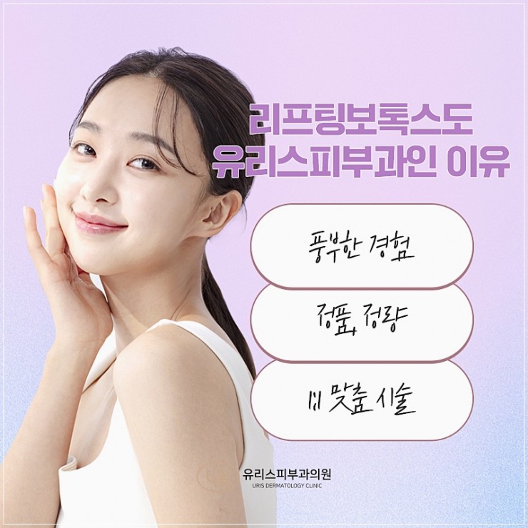요즘은 단순히 주름을 없애는 것보다, 자연스럽고 생기 있는 인상으로 회복하는 안티에이징을 선호하는 시대입니다. 계절이 바뀌며 건조하고 탄력이 떨어지기 쉬운 가을철에는 특히 피부의 노화 신호가 눈에 띄게 드러나는 시기입니다. 성복동 보톡스 시술은 이러한 고민을 안고 있는 분들에게 짧은 시술로 즉각적인 탄력 개선과 잔주름 완화 효과를 제공합니다.