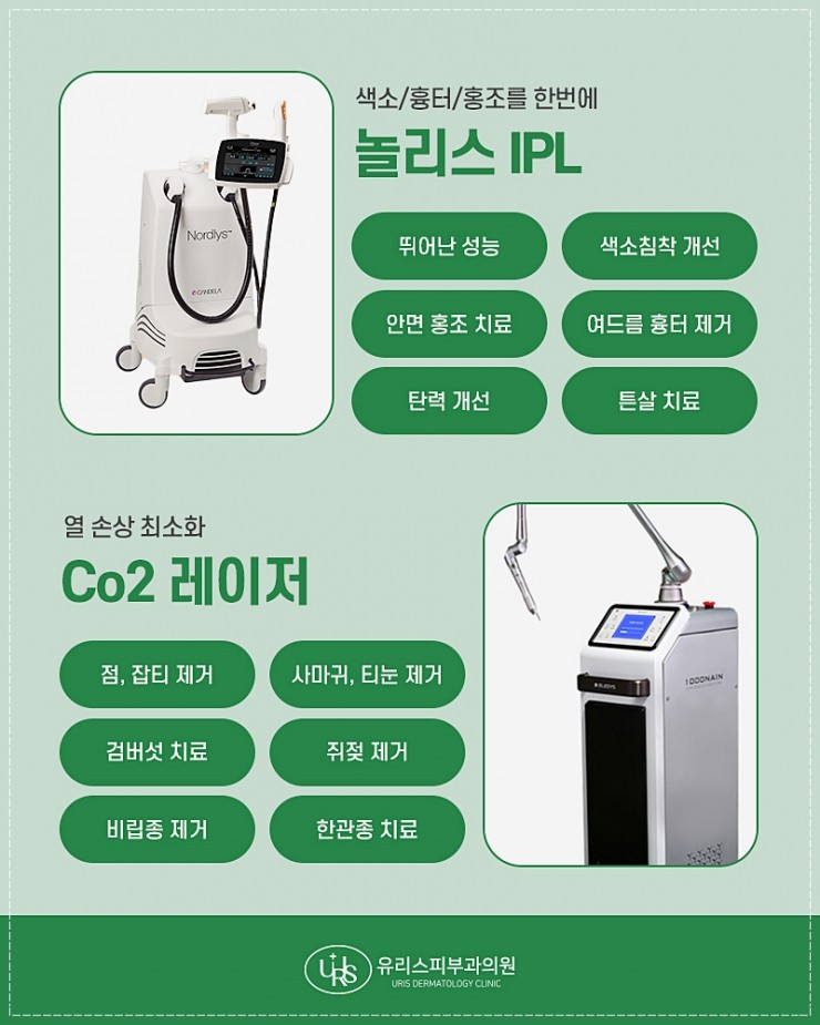 놀리스(IPL): 다파장 에너지를 활용해 색소 외에도 안면홍조·모세혈관 확장 등 복합 피부 문제를 함께 개선합니다.