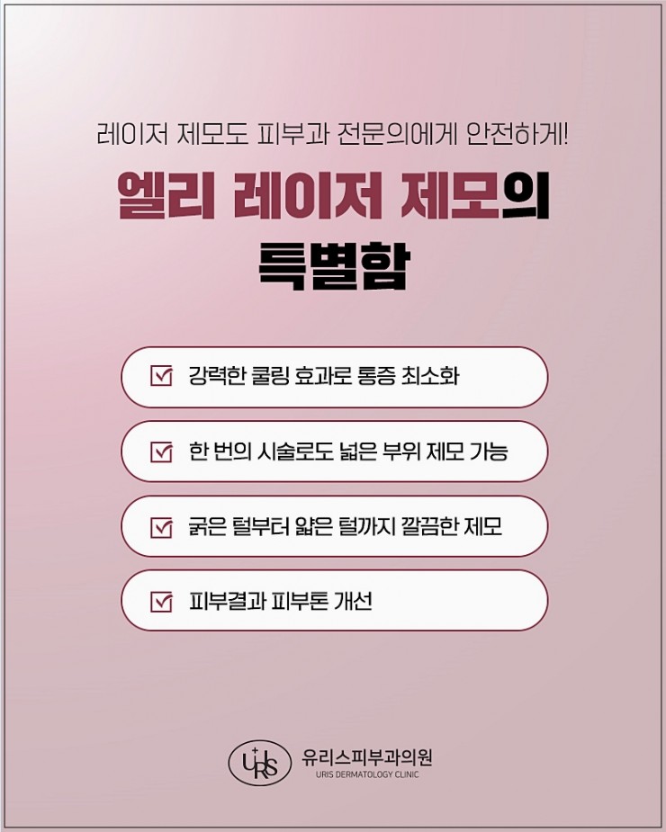 유리스의 레이저 제모 장비, 피부 손상 없는 부드러운 시술