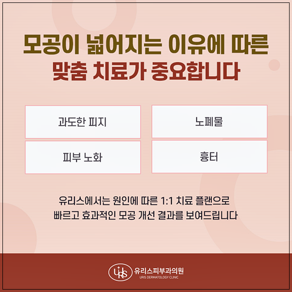 모공치료에서 중요한 포인트는 ‘모공을 줄인다’는 결과보다, 왜 모공이 넓어졌는지를 정확히 파악하는 과정에 있습니다.