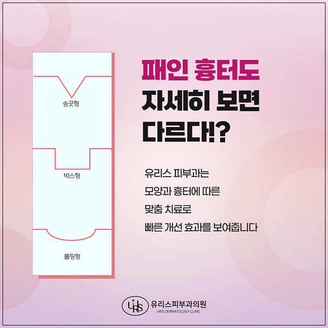 무작정 따라 하는 것”입니다. 흉터는 형태에 따라 접시형, 박스형, 송곳형 등으로 나뉘며, 깊이와