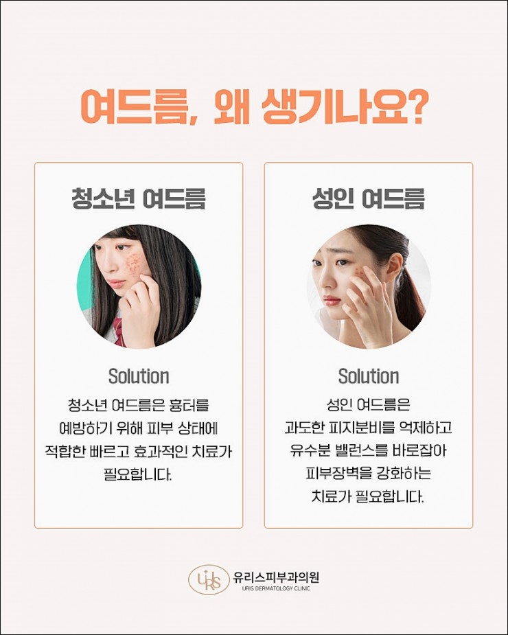 반면 성인 여드름은 호르몬·스트레스·면역력 저하·스킨케어 제품 불일치 등이 원인이 되는 경우가 많아,