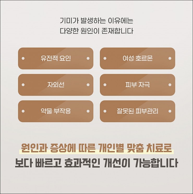 차이를 고려하지 않고 동일한 방식으로 치료를 진행할 경우 만족도가 떨어질 수밖에 없습니다. 죽전 기미·잡티 관리에서는 단순히 ‘색이 있다’는