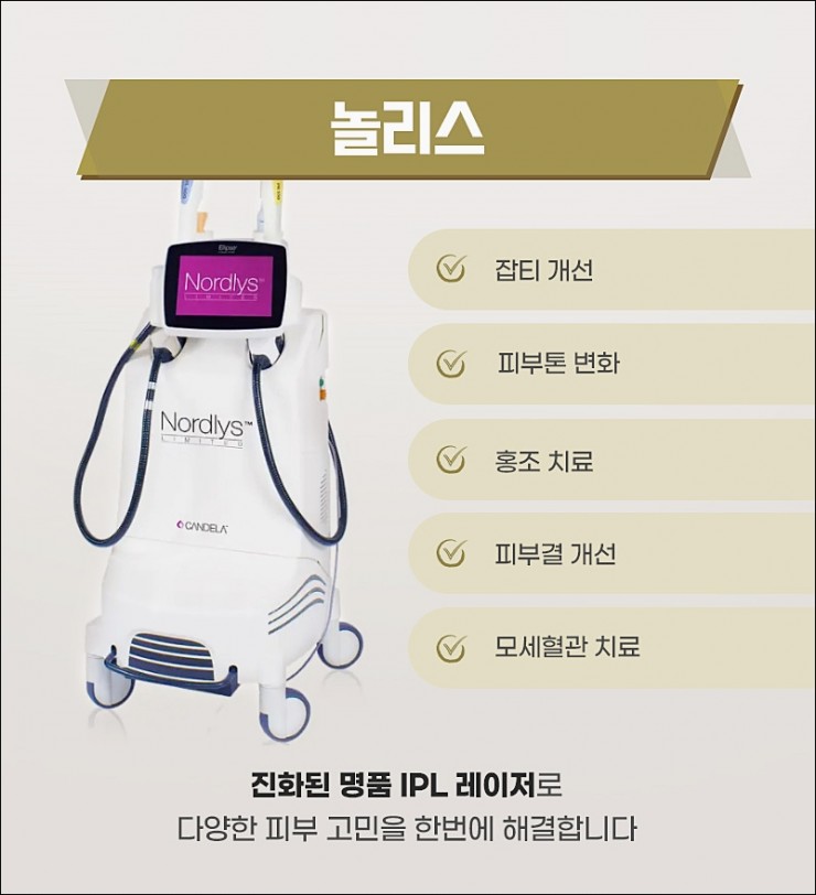 정교한 에너지 빔으로 난치성 기미와 잡티를 안정적으로 관리하는 데 도움을 줍니다. 또한 놀리스 IPL은 색소뿐 아니라 안면홍조나 모세혈관 확장과 같은 혈관성 문제까지 함께 고려할 수 있어, 피부 톤 전반을 정돈하는 데 활용됩니다. 필요에 따라 CO2 레이저를 통해 피부 표면의 돌출 병변을 정리하는 접근도 가능합니다.