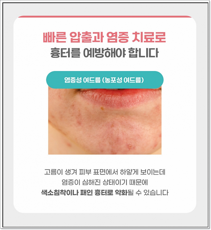 동반하기도 하고, 또 다른 경우에는 비교적 조용히 지나가지만 이후 흉터나 색소 자국으로 남는 경우도