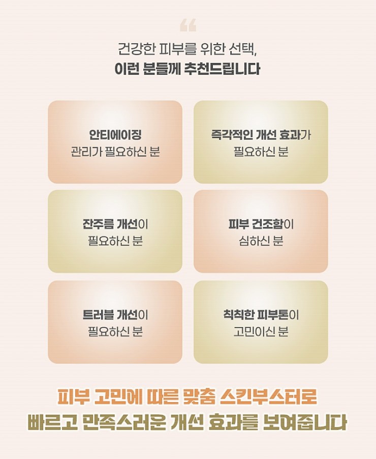 스킨부스터는 종류가 다양한 만큼, 현재 피부 상태와 가장 큰 고민이
