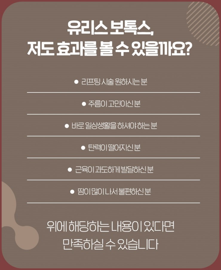 근육 조절을 통해 라인 개선과 주름 완화를 기대할 수 있습니다