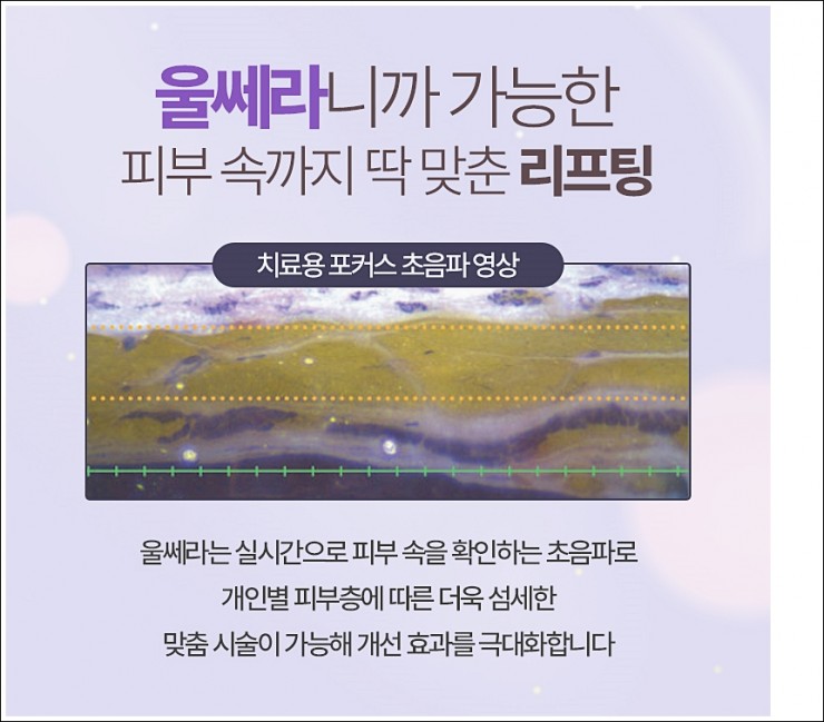 울쎄라는 고강도 집속 초음파(HIFU)를 이용해 피부 깊은 층까지