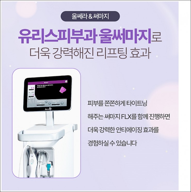 윤곽을 종합적으로 고려해 필요한 부위에 적절한 에너지를 적용하는 것이 중요합니다. 또한 울쎄라는 리프팅뿐